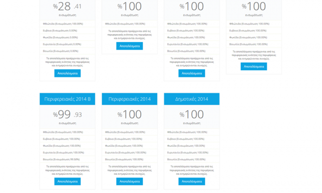 It's a new system for election results presentation for the whole region of Central Greece (Sterea Hellas). It aggregated results from the five prefectures of Central Greece periphery and presented them with colored maps and tables. There is also a back-end application for defining parameters and if needed manual entry of the results.