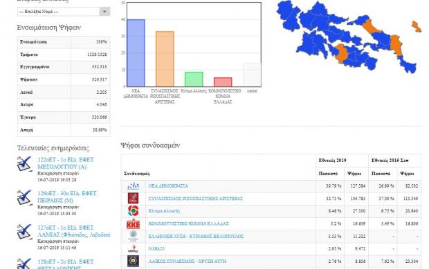 It's a new system for election results presentation for the whole region of Central Greece (Sterea Hellas). It aggregated results from the five prefectures of Central Greece periphery and presented them with colored maps and tables. There is also a back-end application for defining parameters and if needed manual entry of the results.